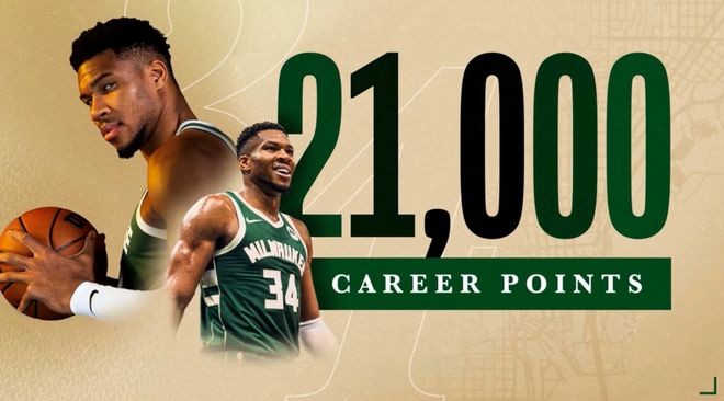 • 里程碑之夜!字母哥生涯总得分突破21000分